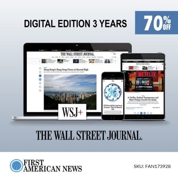 With The Wall Street Journal’s 3-year digital subscription, you’ll gain unlimited and unimpeded access to the complete WSJ news library, WSJ videos, WSJ live TV, audio articles, podcasts, WSJ Magazine, and a digital PDF replica of the physical newspaper. Sign up today and receive immediate access delivered directly to your email address.