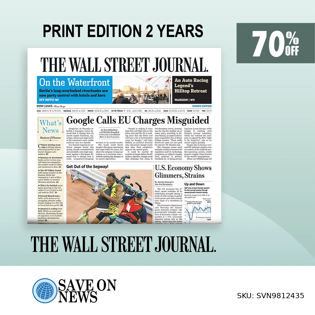 WSJ Print Edition Subscription 2-Year at 70% Discount
