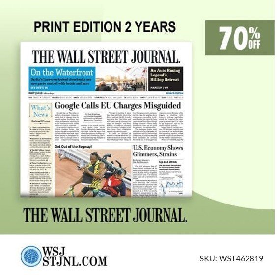 Get a 2-Year Wall Street Journal Print Subscription with daily delivery six days a week, plus access to The WSJ digital edition on iPhone, Android, and PC. Stay closely connected to finance, politics, medicine, and global news. Exclusive online offer with a generous 70% discount. Subscribe now!